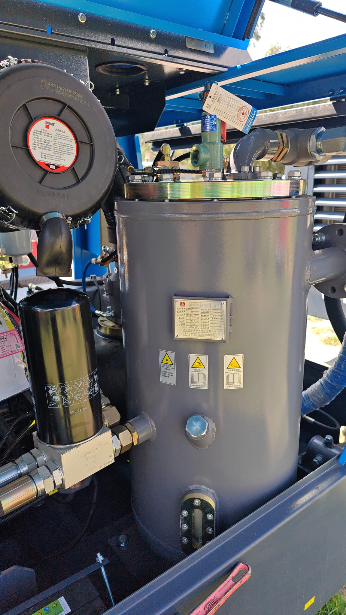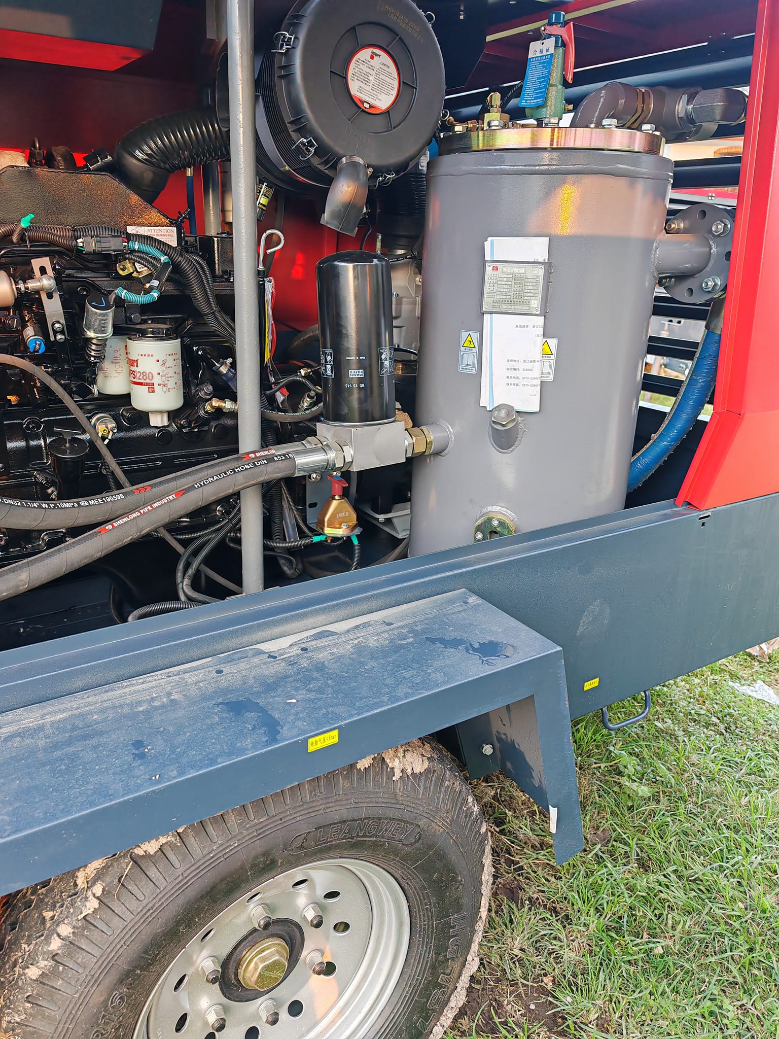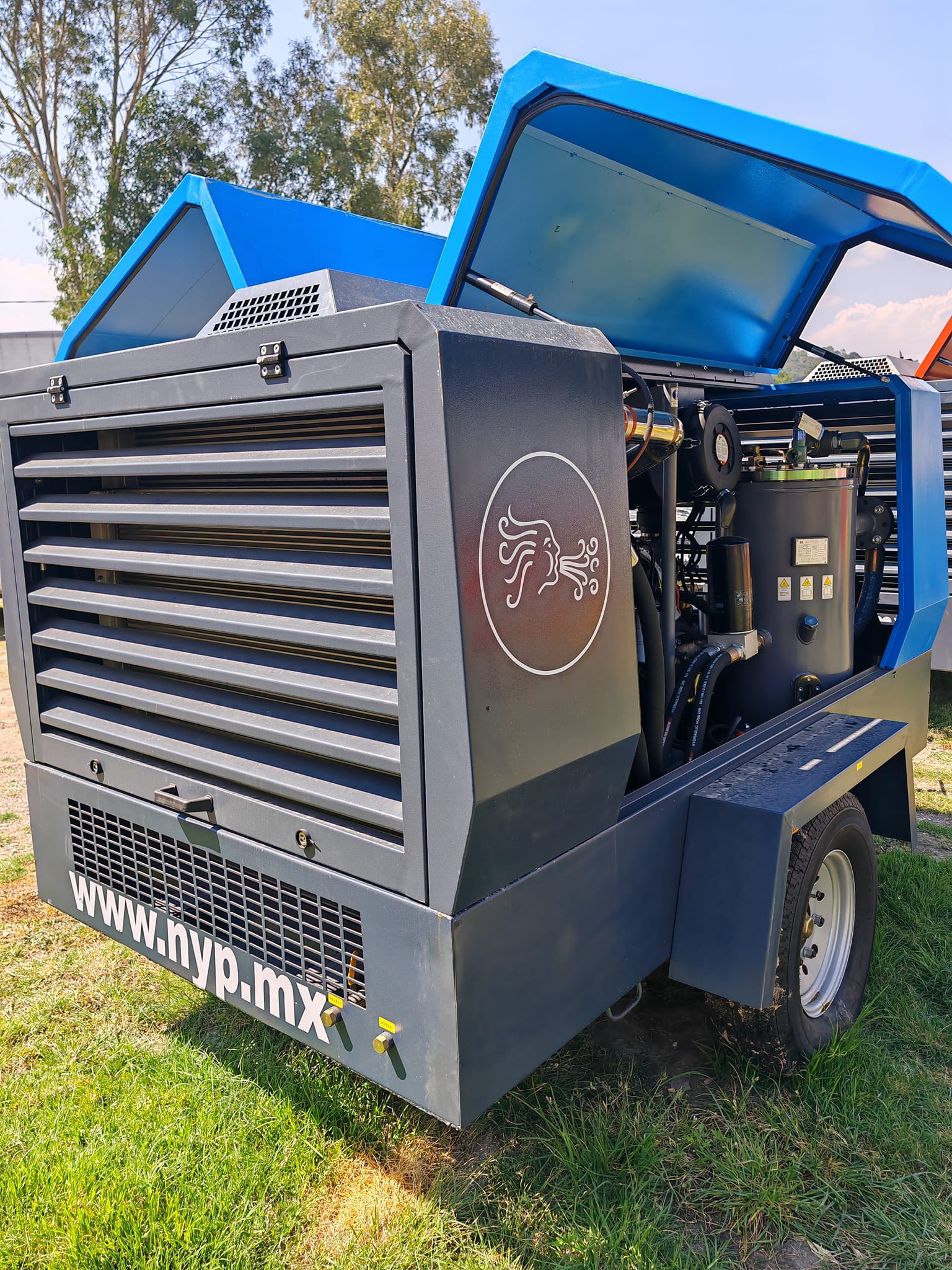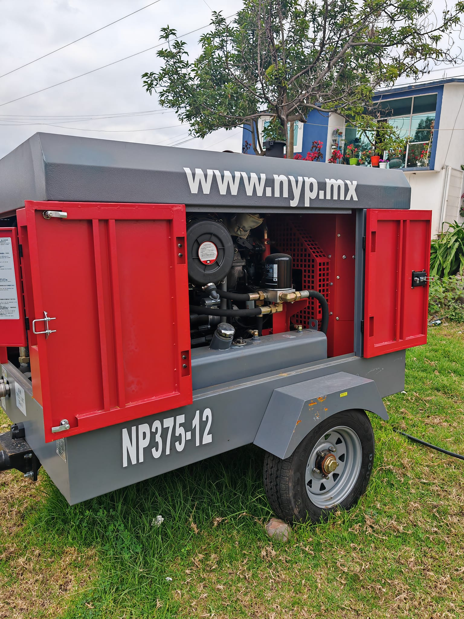 Potente y confiable, con 185 HP y un sistema eléctrico de 24V, impulsado por un motor Cummins 6BTA5.9. Su tanque de combustible de 375 litros y la inyección mecánica garantizan un rendimiento óptimo para aplicaciones exigentes. Ideal para perforación, sandblast y trabajos industriales.