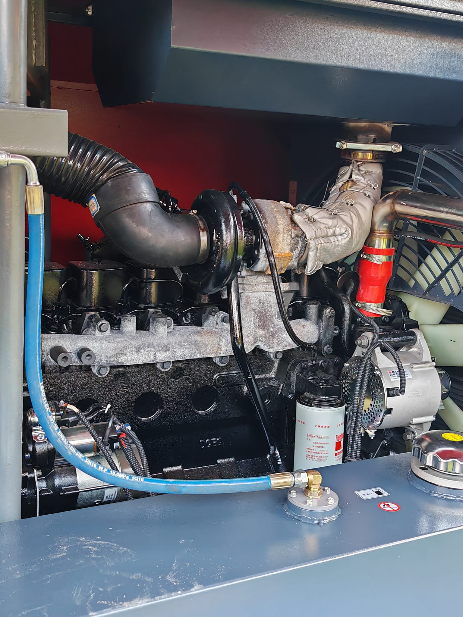 Compacto y potente, con 125 HP, ideal para trabajos que requieren movilidad y desempeño constante. Entrega 375 PCM a 175 PSI con un motor 4BTA3.9-C125 y un tanque de 80 litros. Su diseño optimiza el consumo de combustible sin comprometer la potencia.