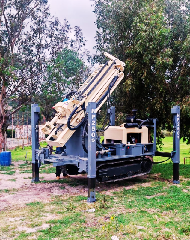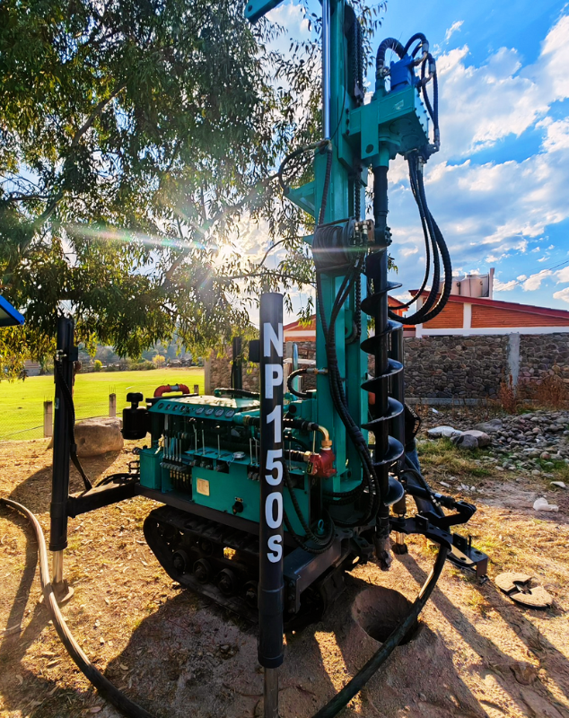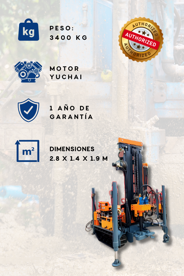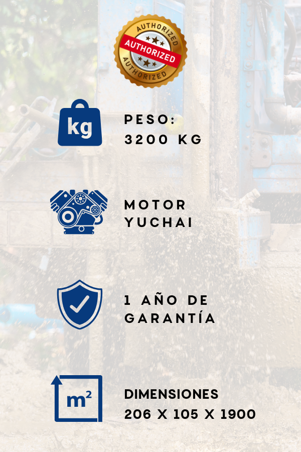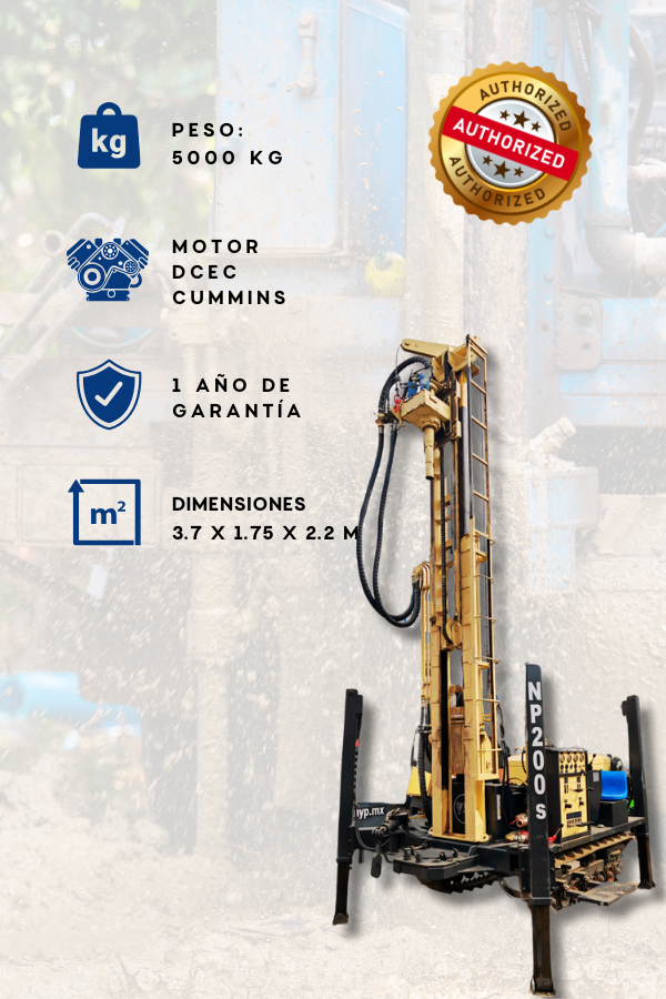 La NP150S es la perforadora hidráulica ideal para pozos profundos, con un diseño robusto y eficiente. Capaz de perforar hasta 160 metros con diámetros de 3 ½” a 6”, esta máquina ofrece un rendimiento excepcional en terrenos exigentes. Equipada con un motor Yuchai y una estructura reforzada, garantiza estabilidad y eficiencia operativa. Su sistema hidráulico avanzado permite una rotación de 50-100 rpm y una fuerza de levante de 8 toneladas, asegurando perforaciones precisas y rápidas. Además, cuenta con accesorios como tubería de 76 mm y martillo de fondo de 5”, optimizando cada proyecto con la mejor tecnología en perforación.
